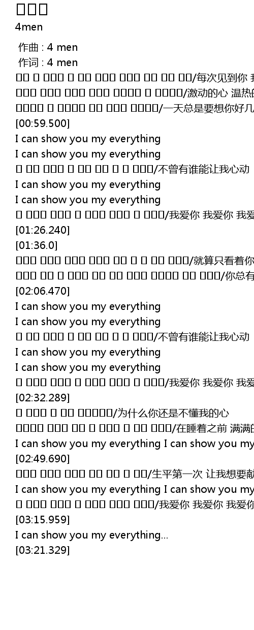 | [03:03.299] | I can show you my everything I can show you my everything |