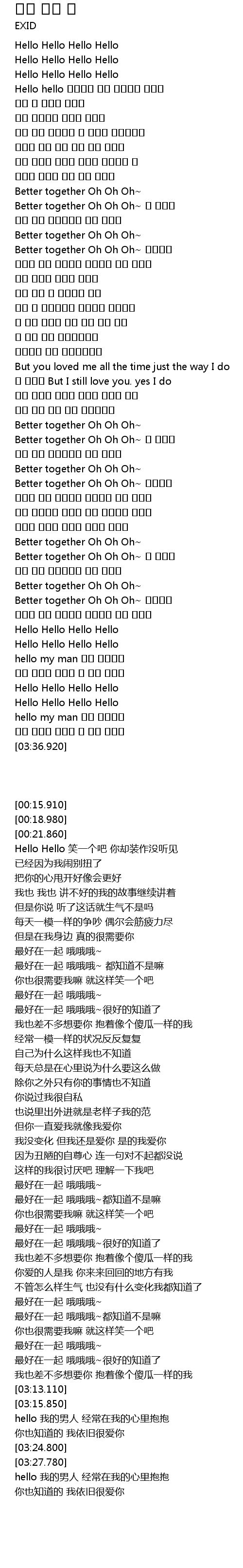 | [03:19.230] | hello my man 항상 내맘안에 |