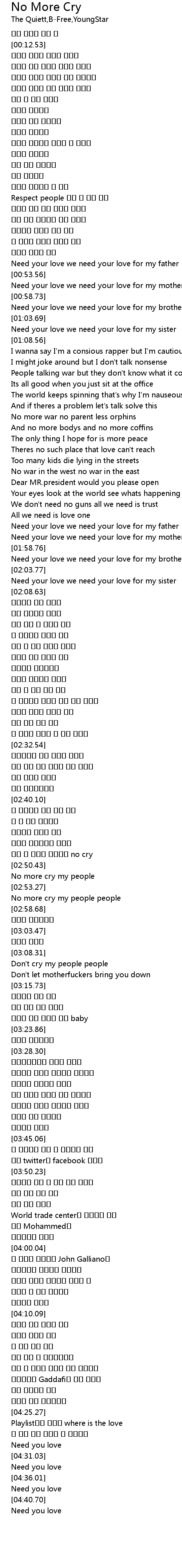 | [02:51.45] | No more cry my people |