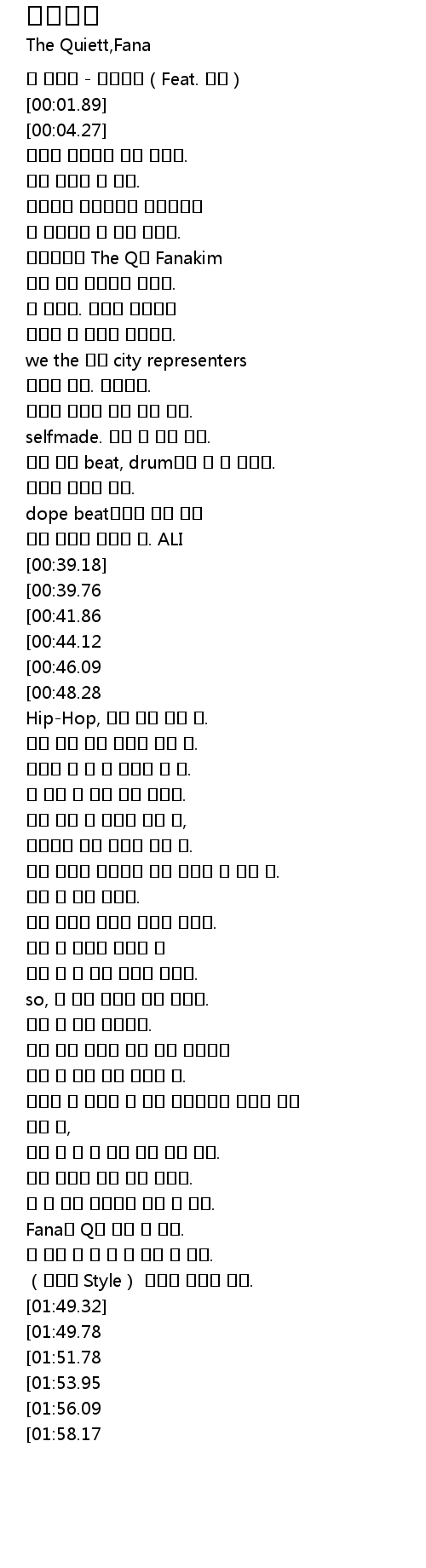 | [00:00.10] | 더 콰이엇 - 속닥속담(Feat. 화나) |