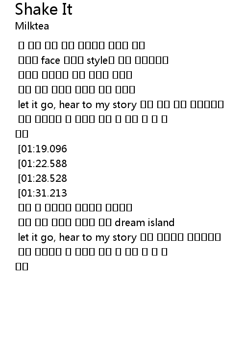 | [02:08.914] [01:19.096] | Shake it body, Let's party with me tonight |