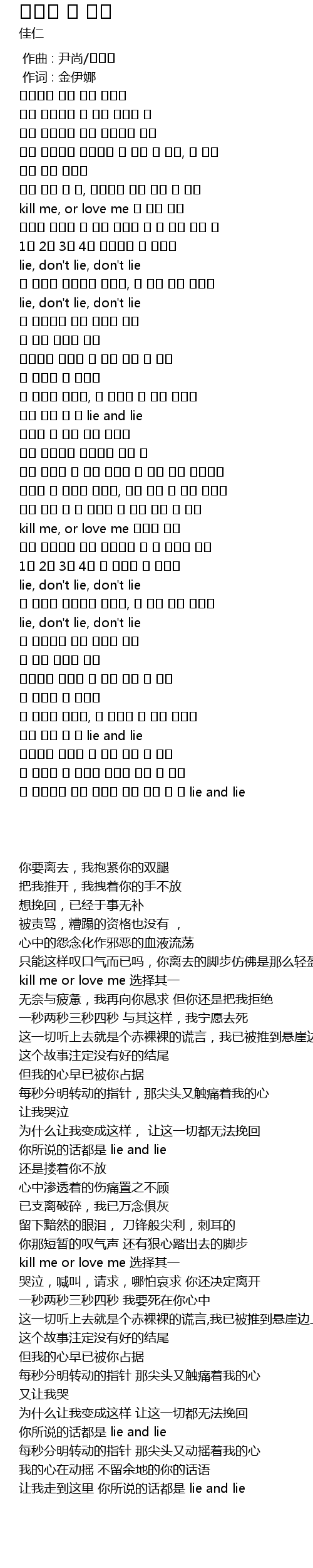 | [03:35.380] | 날 여기까지 오게 만들어 내게 하는 말 다 lie and lie |
