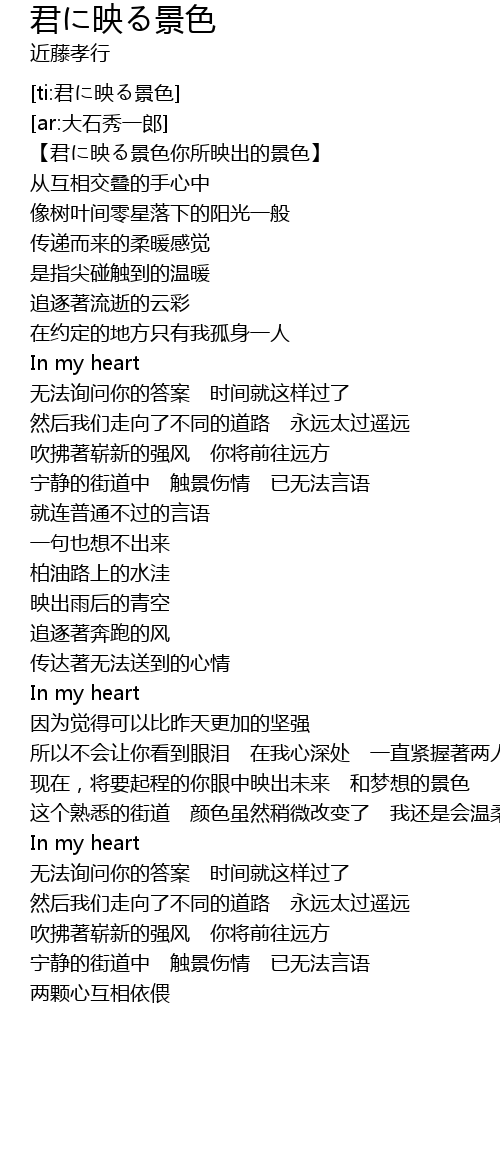 | [00:05.125] | 【君に映る景色你所映出的景色】 |