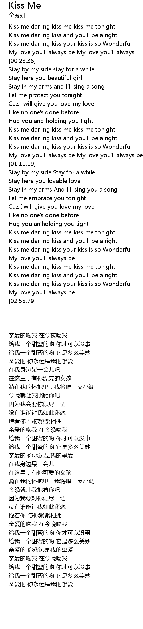 | [02:45.11] | Kiss me darling kiss your kiss is so Wonderful |