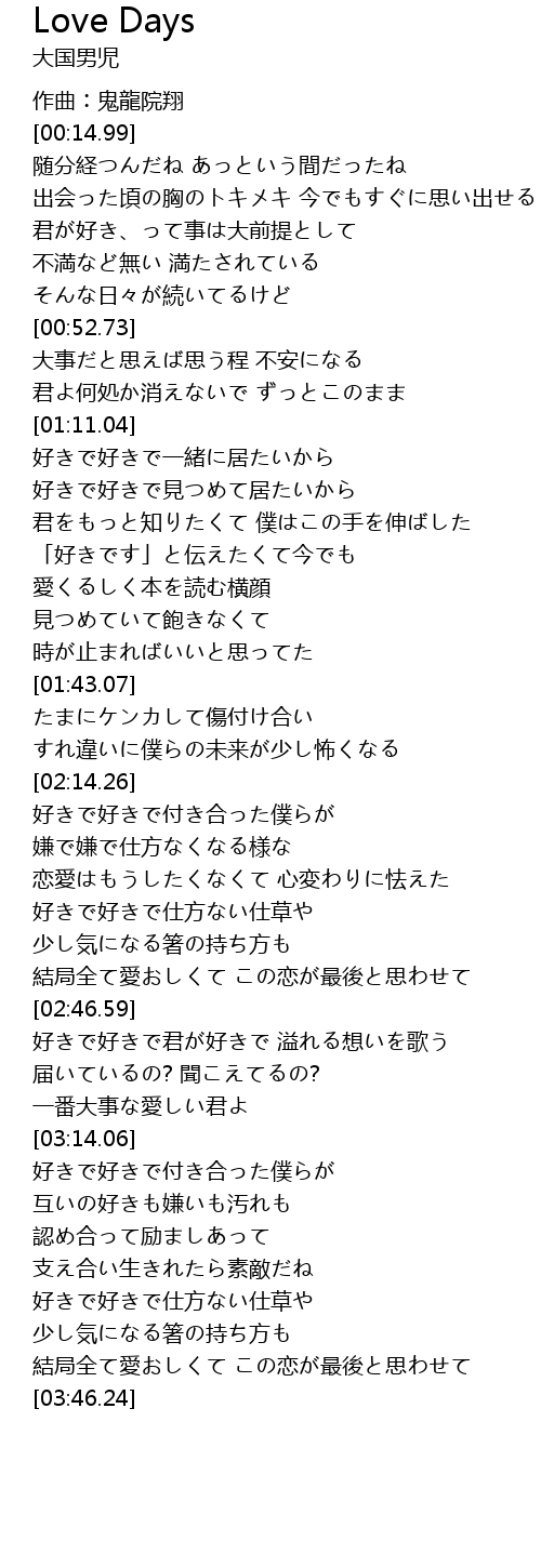 | [02:59.18] | 好きで好きで君が好きで 溢れる想いを歌う |