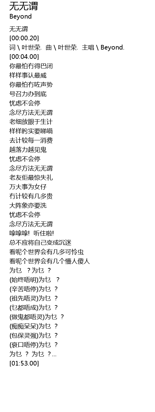 | [01:31.00] | (乜都唔成)为乜 ? |