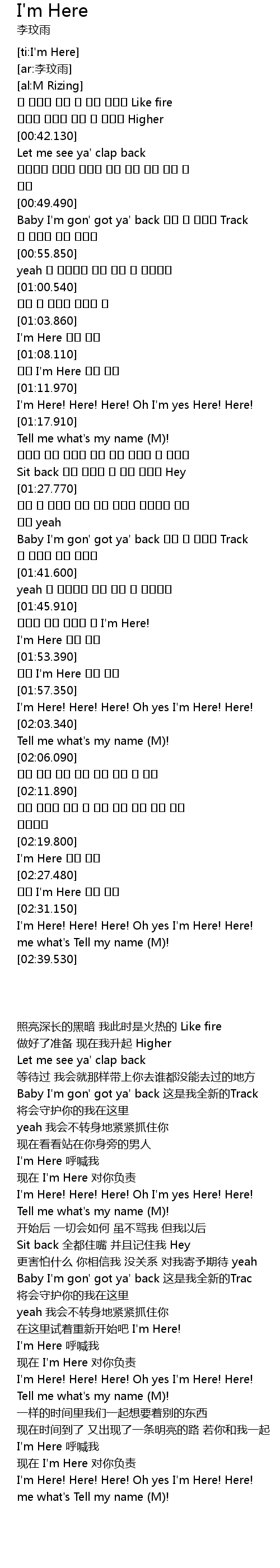 | [01:12.850] | I'm Here! Here! Here! Oh I'm yes Here! Here! |