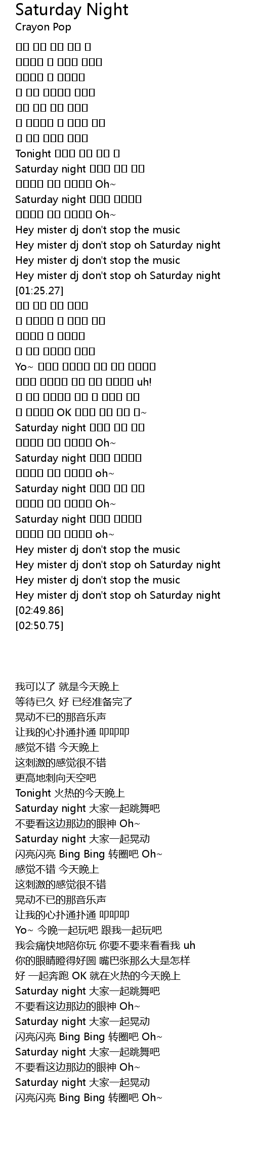 | [02:14.65] | Saturday night 다같이 흔들어요 |