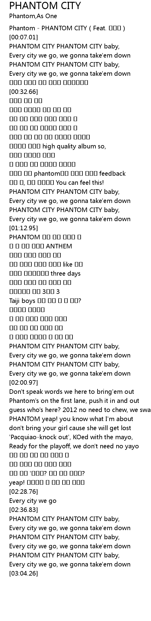 | [00:20.43] | PHANTOM CITY PHANTOM CITY baby, |