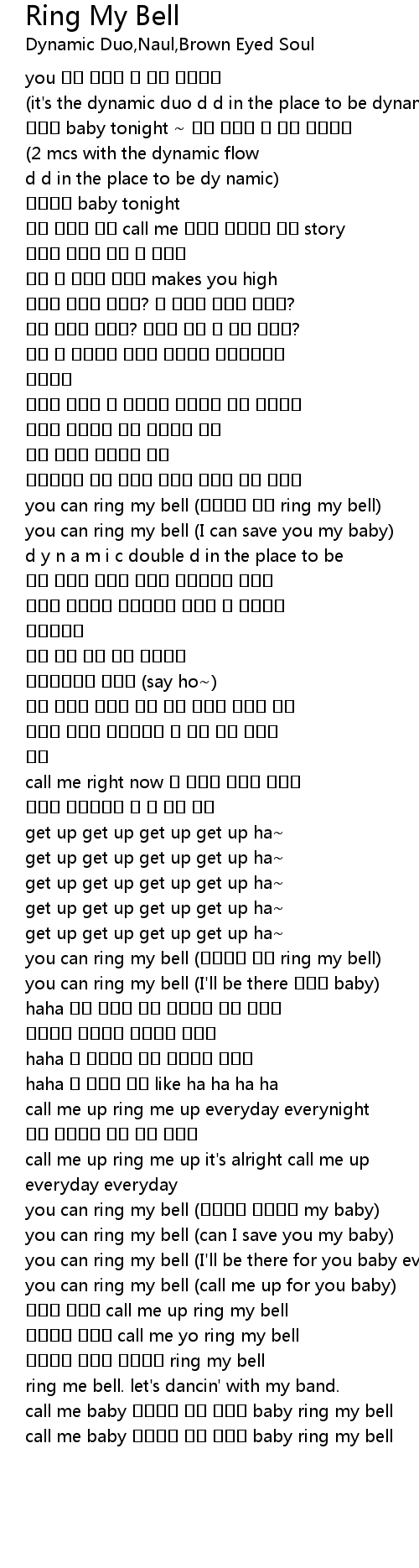 | [02:37.470] | you can ring my bell (언제든지 언제든지 my baby) |