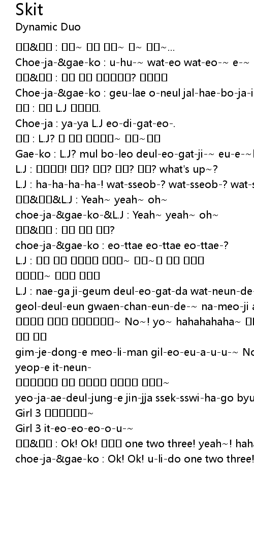 | choe-ja-&gae-ko-&L.J : Yeah~ yeah~ oh~ | |