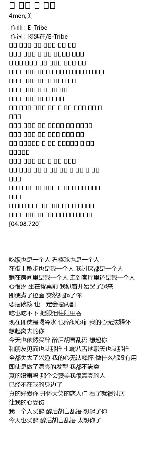 나 혼자 술이야 취해 헛소리야 니가 보고싶다 |