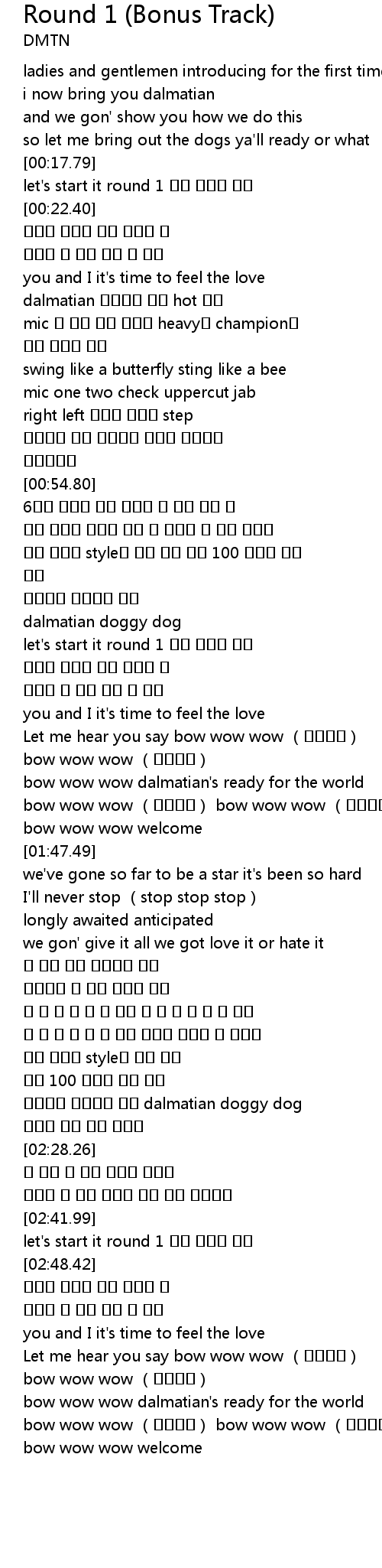 | [01:40.20] | bow wow wow (라랄랄라) bow wow wow (라랄랄라) |