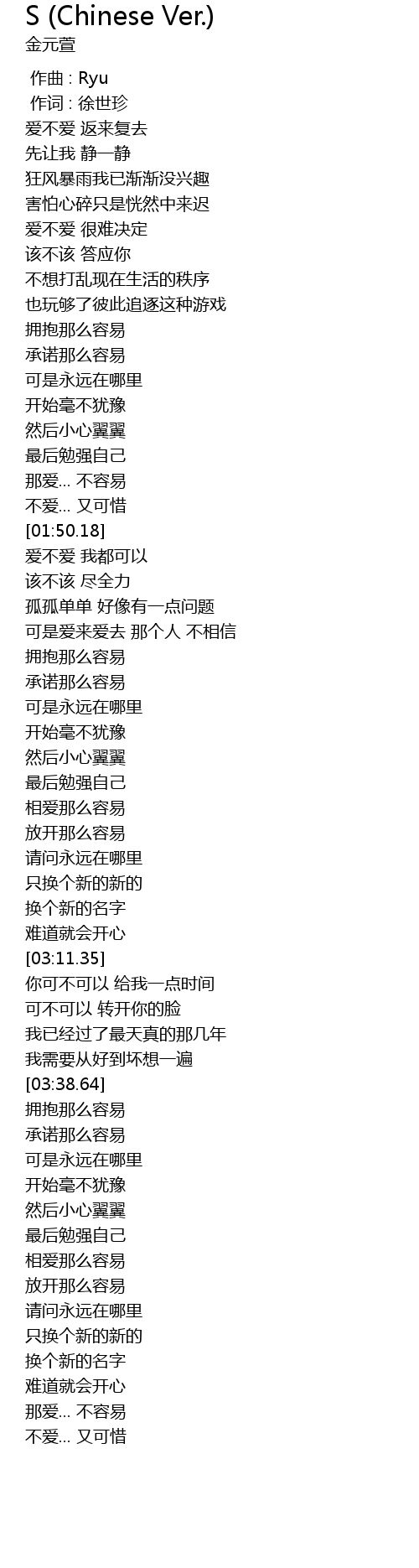 | [03:05.01] | zhǐ huàn gè xīn de xīn de |