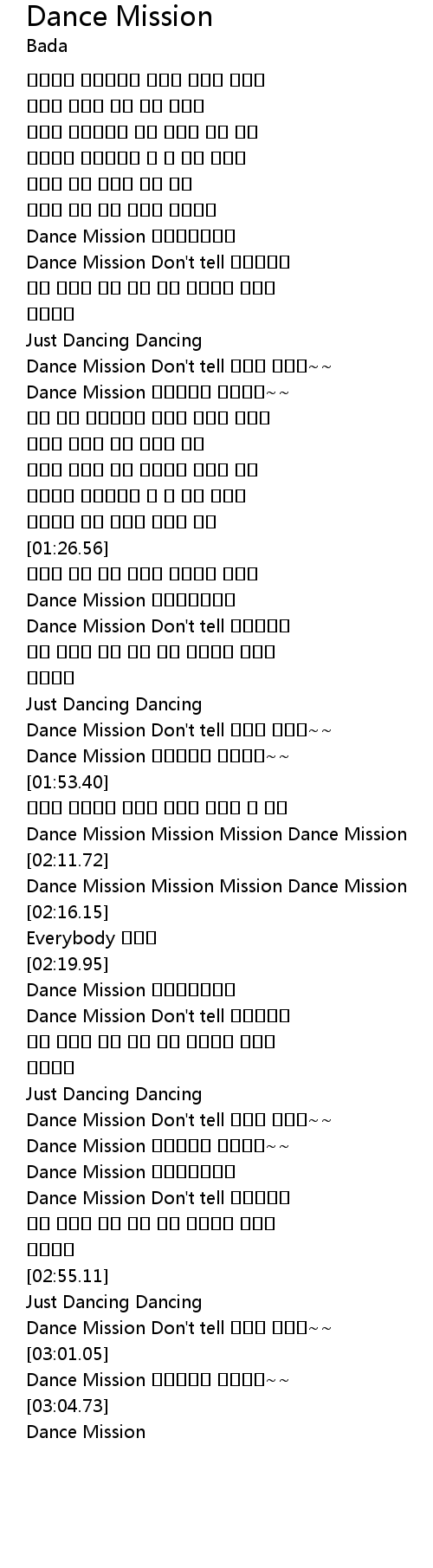 | [01:35.06] | Dance Mission Don't tell 맘맘맘맘마 |