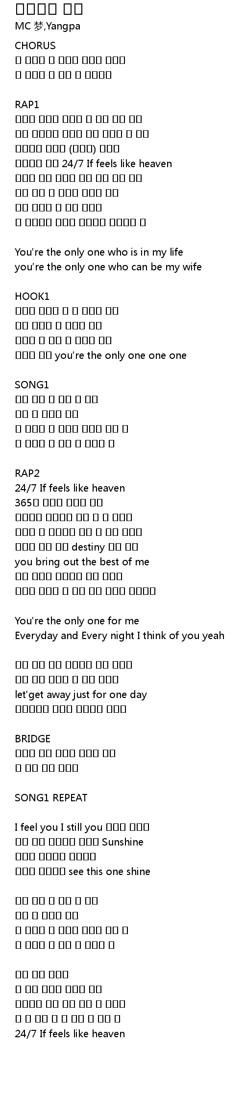 너와나 숨쉬는 이 공간 바로 모두다 천국이야 |