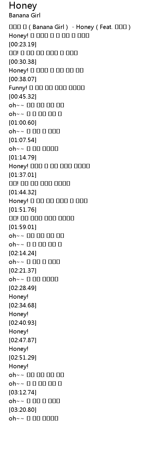 | [00:00.35] | 바나나 걸(Banana Girl) - Honey(Feat. 이현지) |