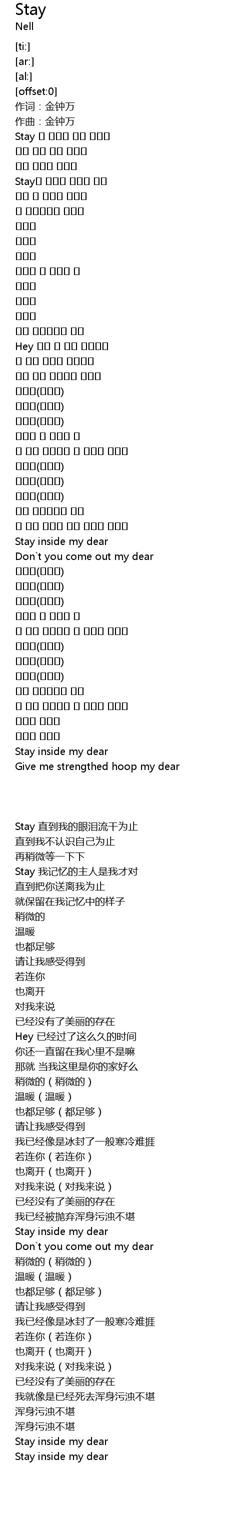 | [00:06.55] | Stay 내 눈물이 마를 때까지 |