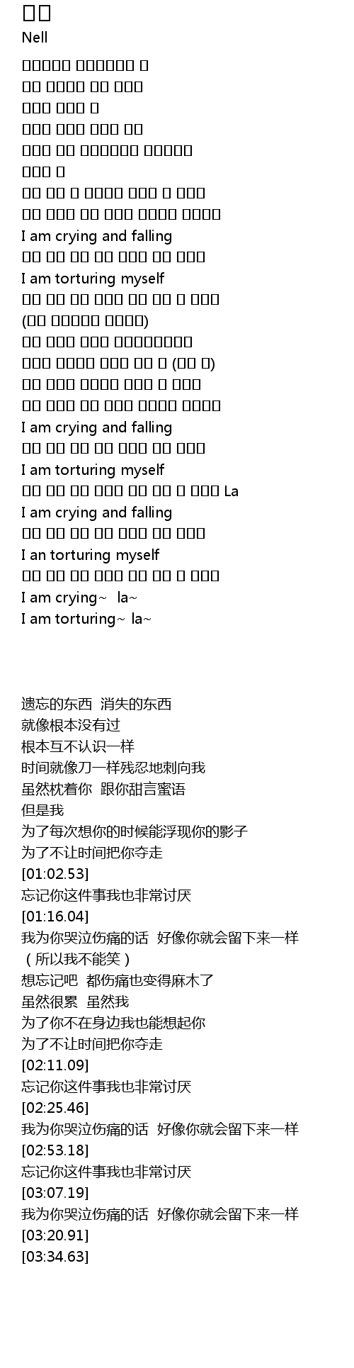 | [03:14.23] | 내가 너로 인해 아프면 네가 머물 것 같아서 |