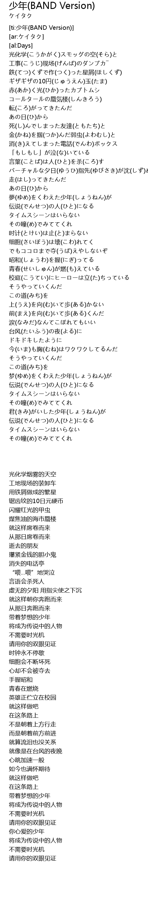 | [04:14.20] | 君(きみ)がいした少年(しょうねん)が |