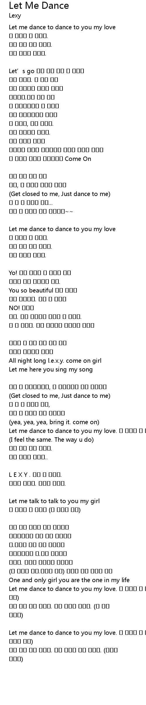 Let me dance to dance to you my love. 내 사랑은 너 뿐이야 (나의 사랑은 너야) |