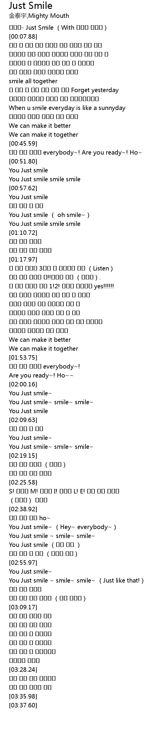 | [00:00.01] | 김태우- Just Smile (With 마이티 마우스) |