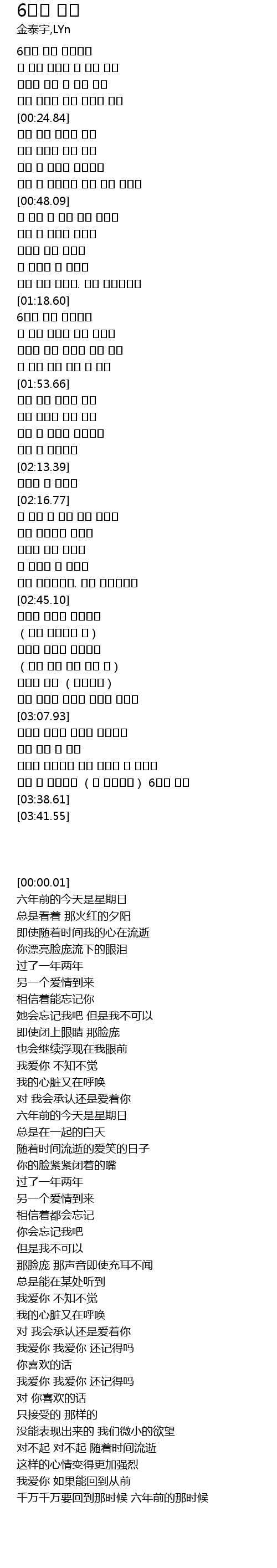| [03:30.18] | 제발 그 시간으로 (그 시간으로) 6년전 오늘 |