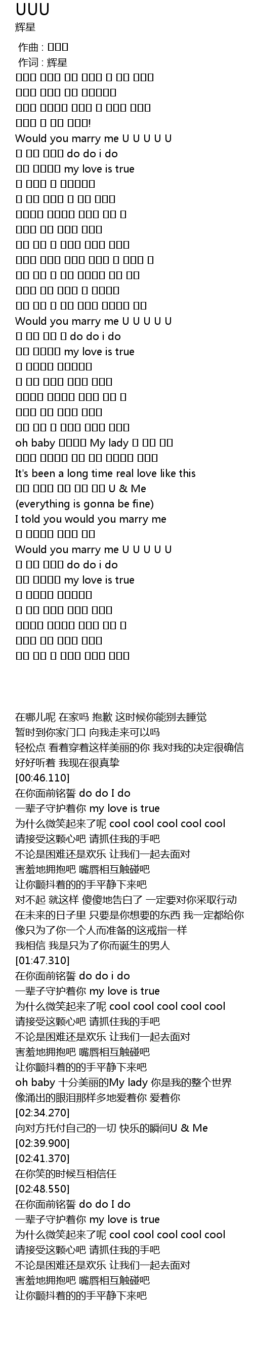 | [00:46.110] | Would you marry me U U U U U |
