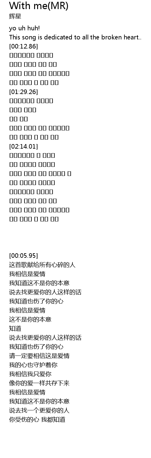 | [00:07.58] | This song is dedicated to all the broken heart.. |