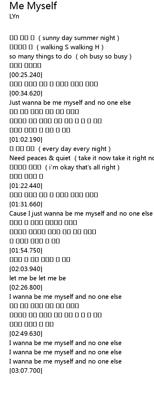 | [01:34.300] | Cause I just wanna be me myself and no one else |