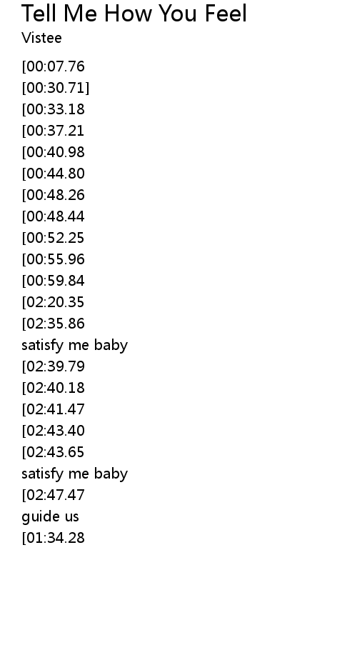 | [01:58.14][00:55.96] | tell me , tell me how you feel now |
