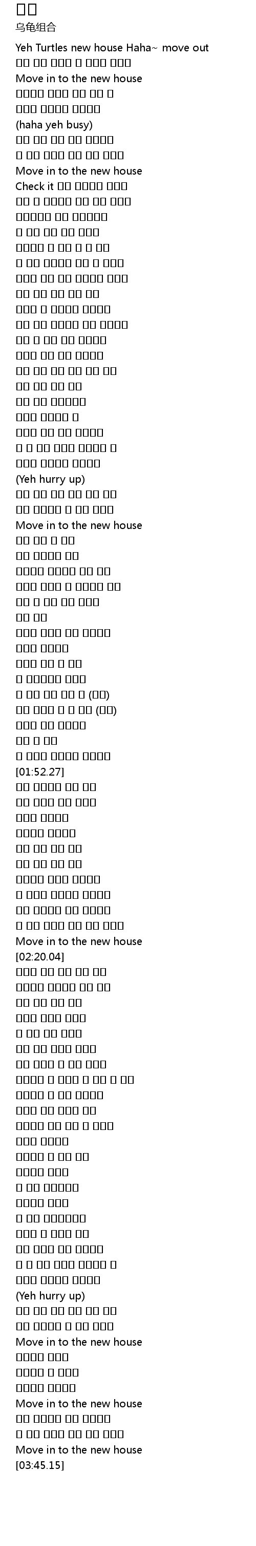 | [00:05.06] | Yeh Turtles new house Haha move out |