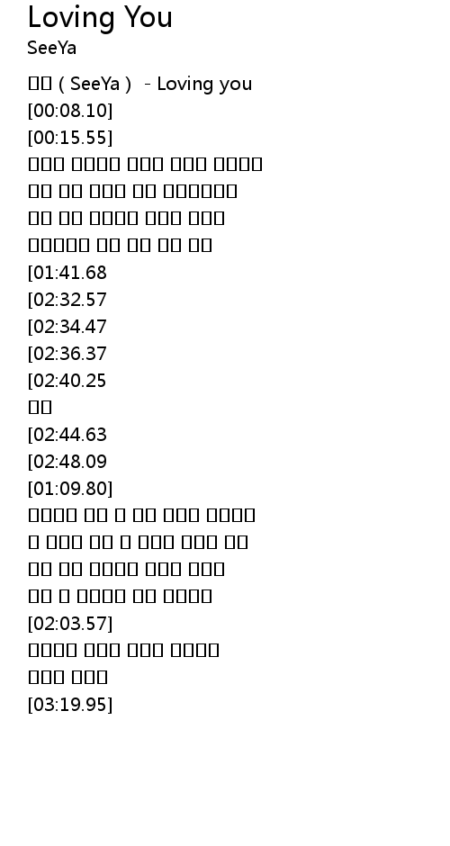 | [00:01.12] | 씨야(SeeYa) - Loving you |