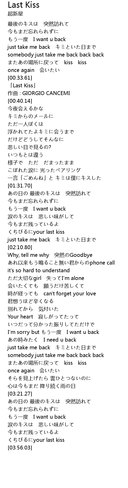 | [02:56.35] | またあの場所に戻って kiss kiss |