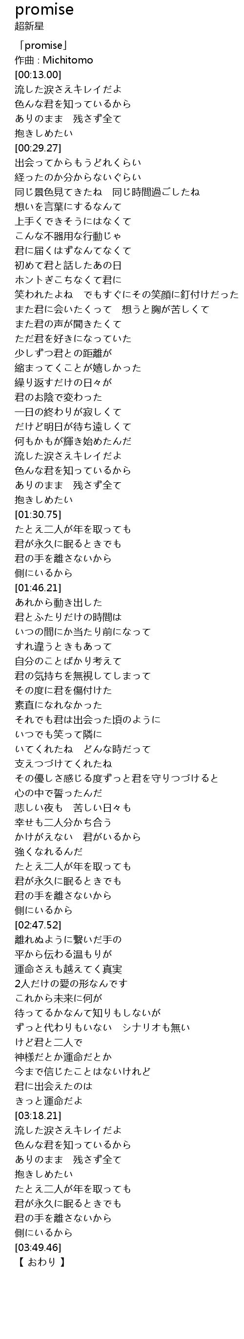 | [02:10.65] | その優しさ感じる度ずっと君を守りつづけると |