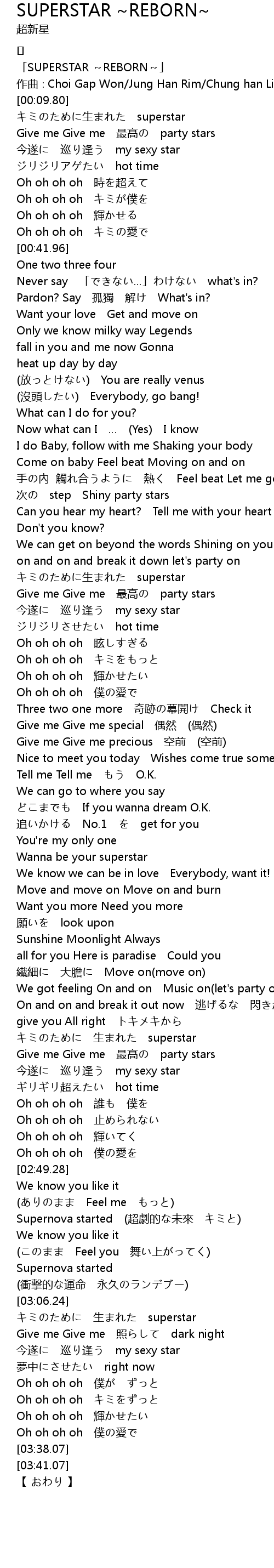 | [00:01.80] | 「SUPERSTAR ~REBORN~」 |