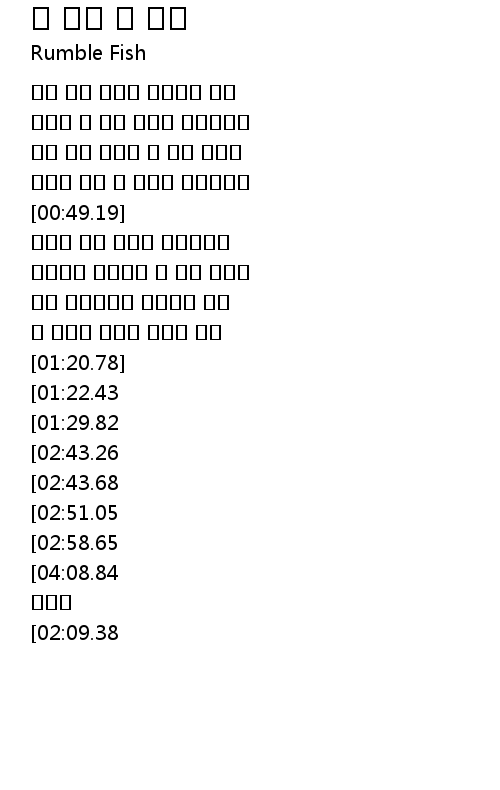 | [03:46.51][02:43.68][01:39.23] | 내 사랑 그대 내 곁에 있어줘 |
