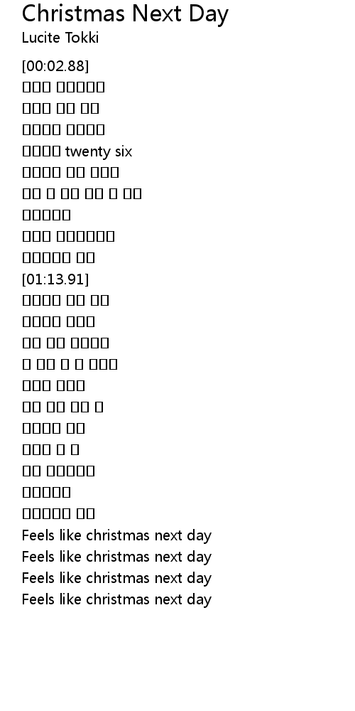 | [02:12.20] | Feels like christmas next day |