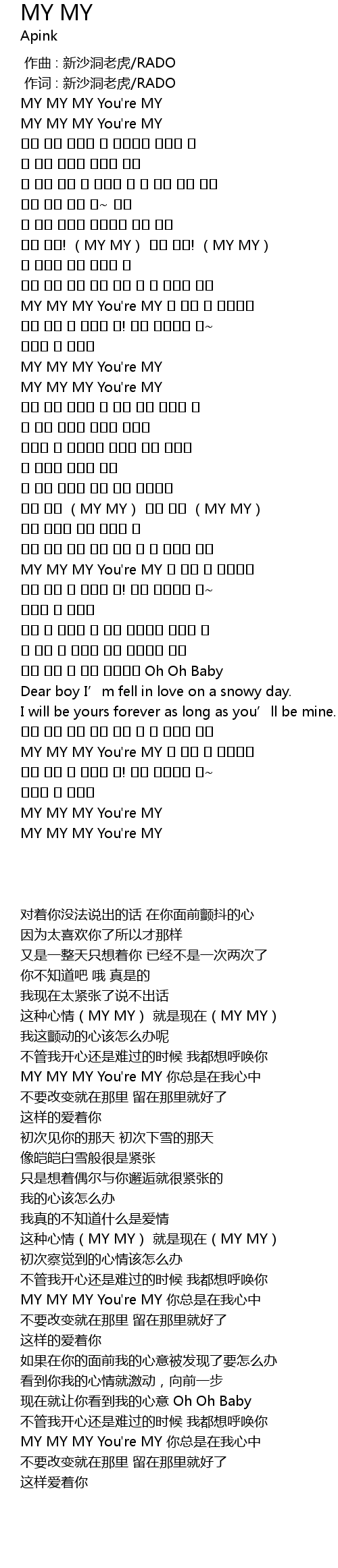 | [02:18.960] | MY MY MY You're MY 넌 항상 내 마음속에 |