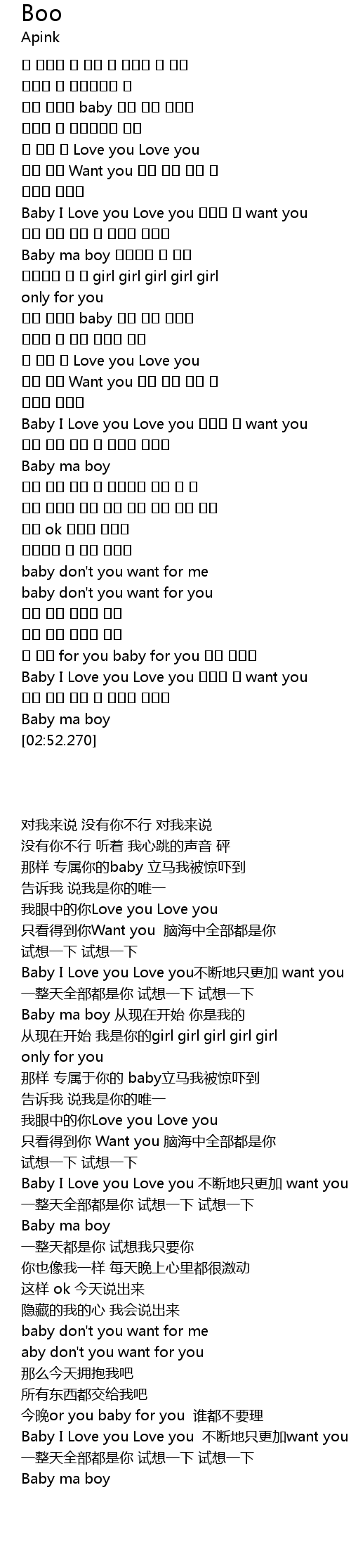 | [02:35.860] | Baby I Love you Love you 자꾸만 더 want you |