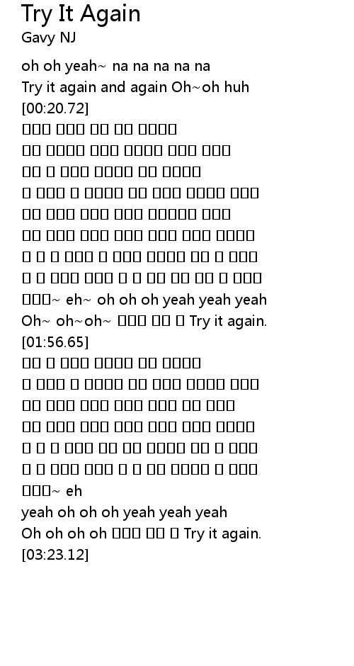 | [03:12.98] | Oh oh oh oh 그래도 다시 또 Try it again. |