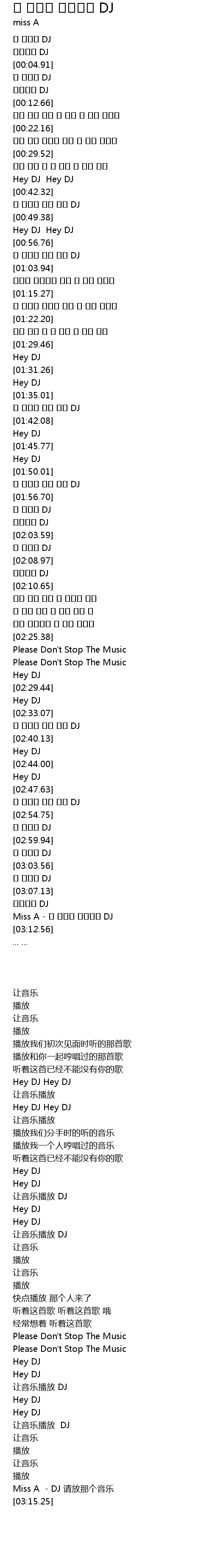 | [03:11.19] | Miss A - 그 음악을 틀어줘요 DJ |