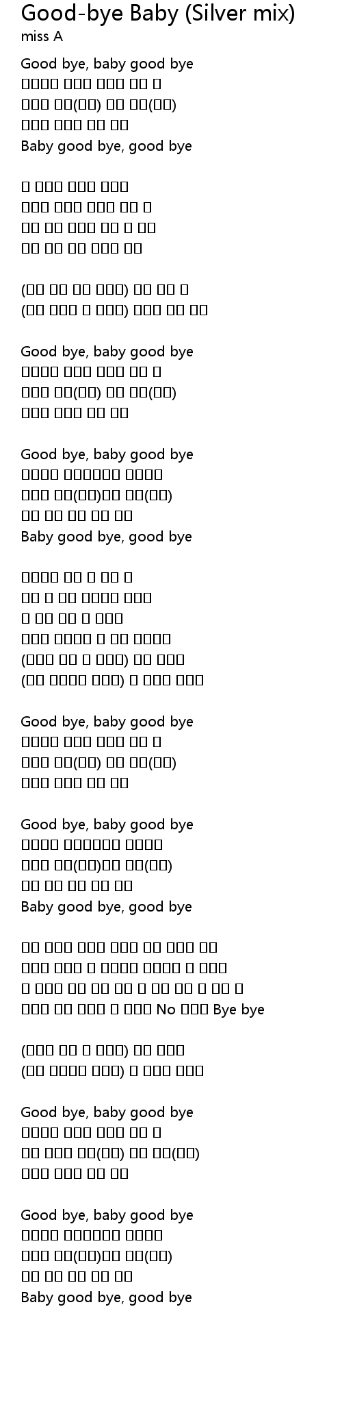 Good bye, baby good bye |