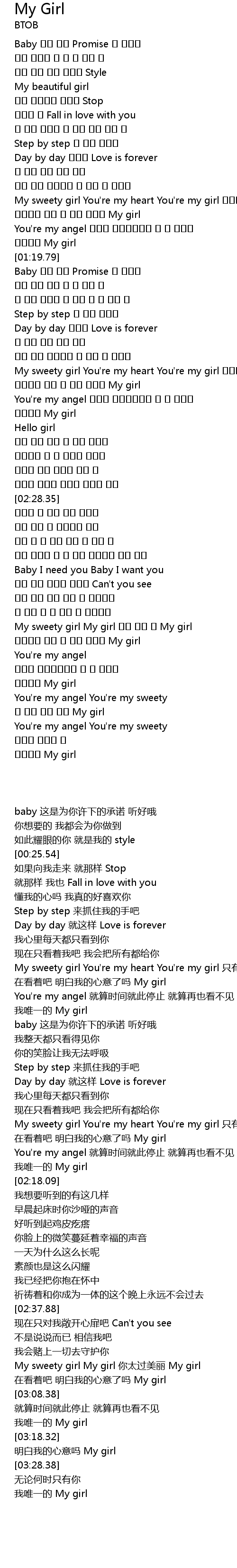 | [02:57.38] | My sweety girl My girl 너무 예쁜 널 My girl |