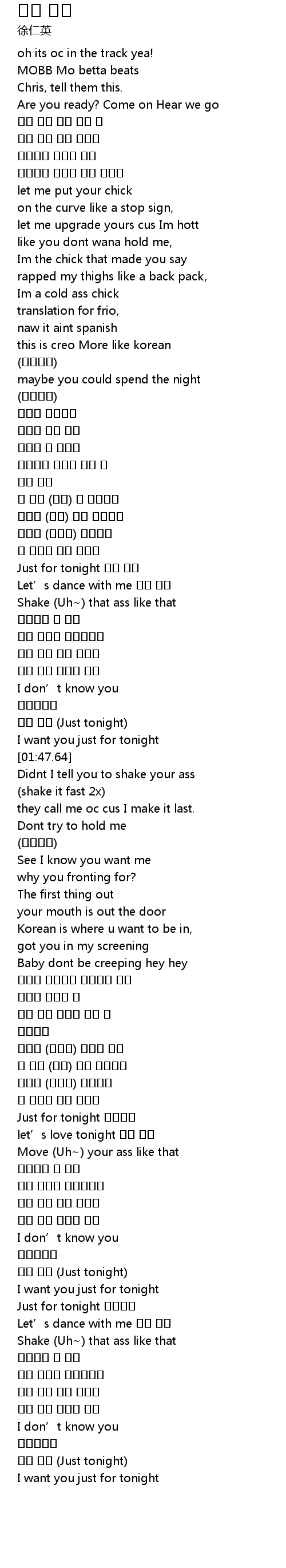 | [02:33.73] | Just for tonight 나와함께 |