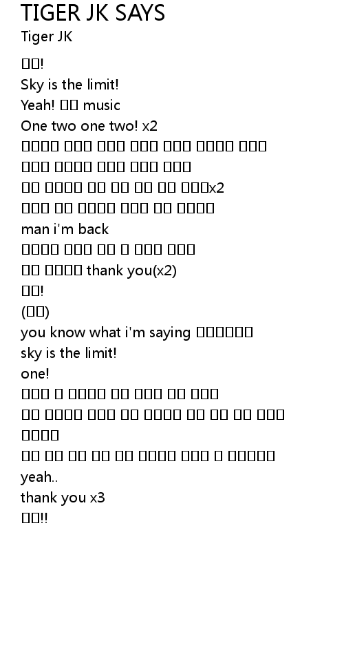 | Song | TIGER JK SAYS |