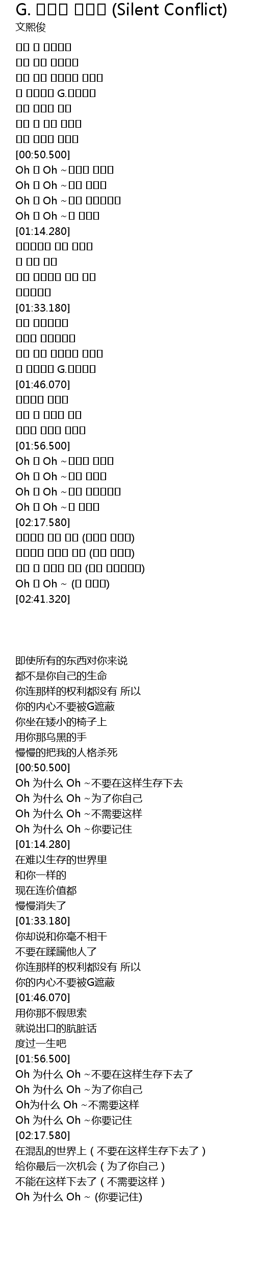| [01:57.100] | Oh 왜 Oh ~그렇게 살지마 |