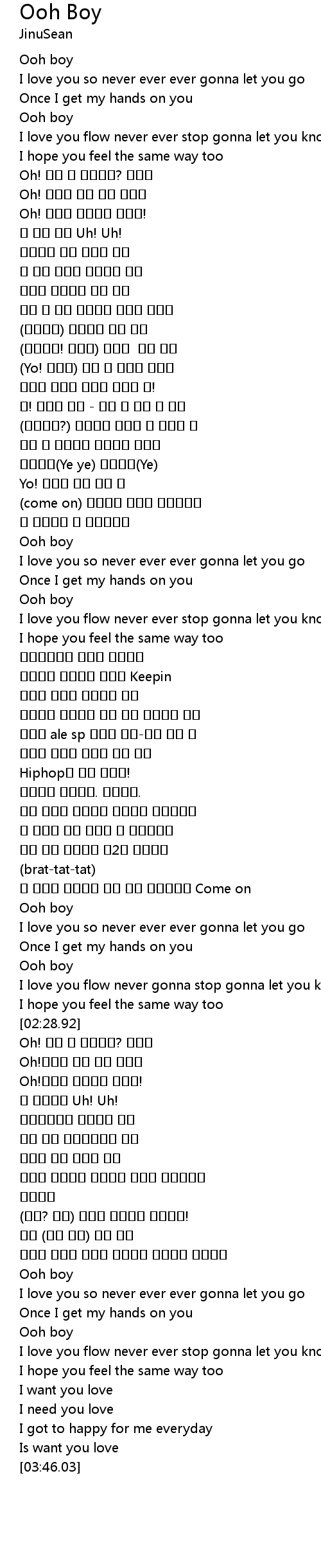 | [01:27.99] | I love you flow never ever stop gonna let you know |