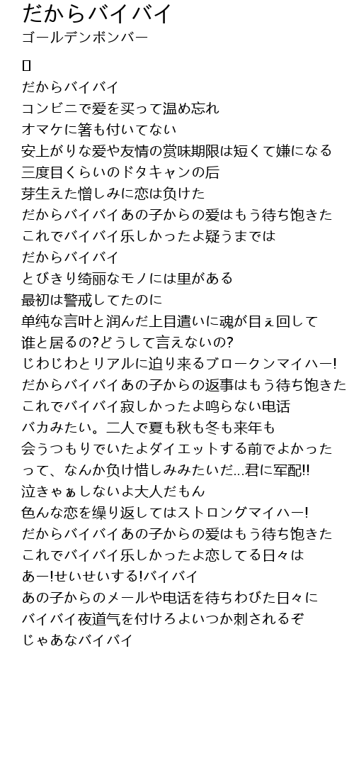 | だからバイバイあの子からの返事はもう待ち饱きた | |