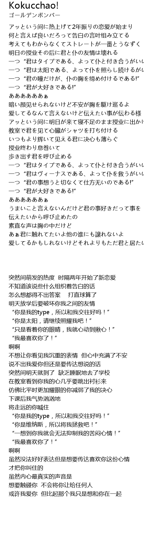 | Song | Kokucchao! |